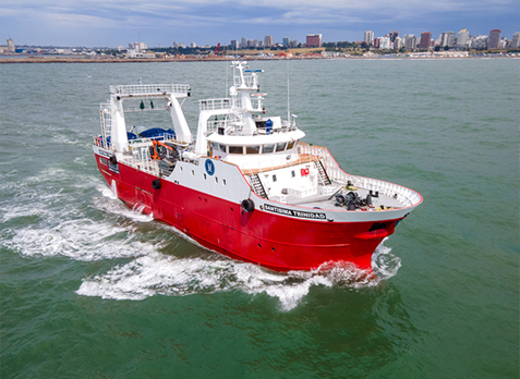 Producto: (congelado a bordo) Calamar entero, vaina de calamar, langostino, merluza (filet, H.G.T. y embutido)